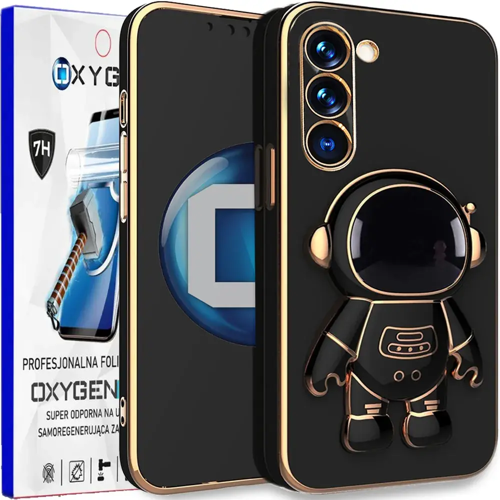 Etui na telefon Samsung Galaxy S25 5G Oxygen + Uchwyt Astro Czarne + Super Folia