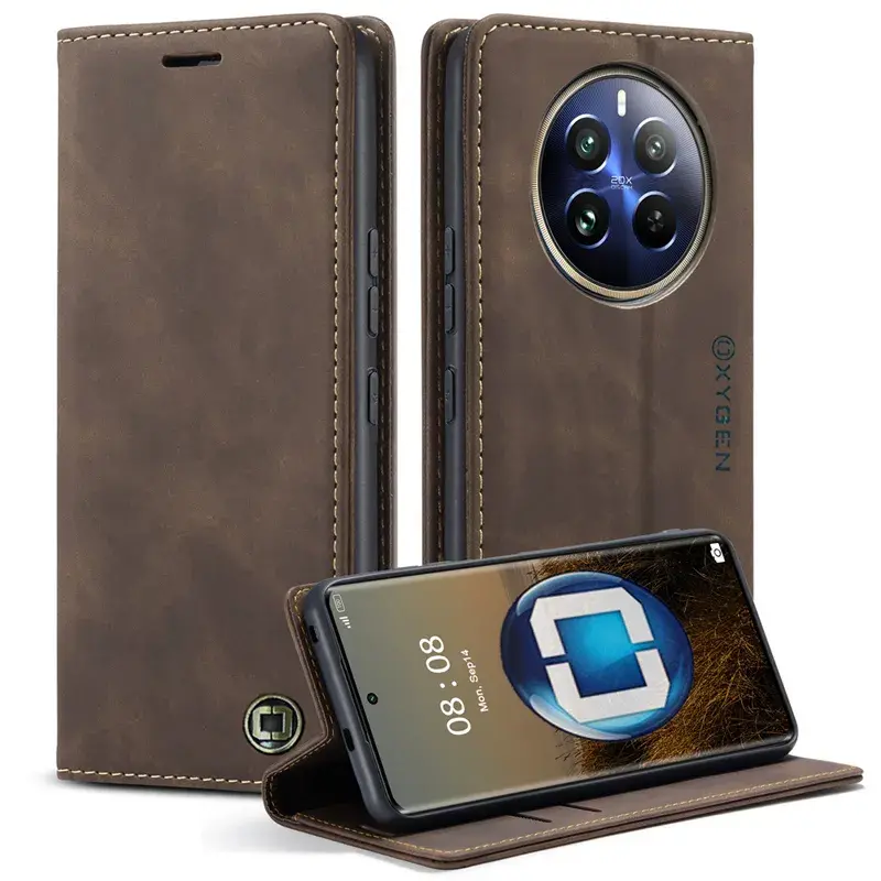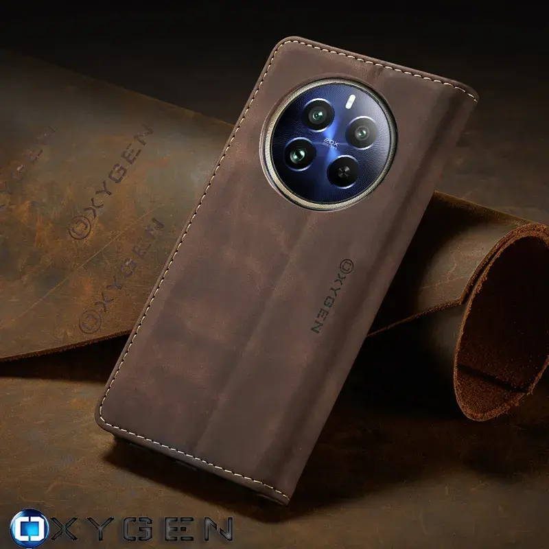 Etui na telefon Realme 12 PLUS 5G Oxygen BooK Brązowe + Super Folia