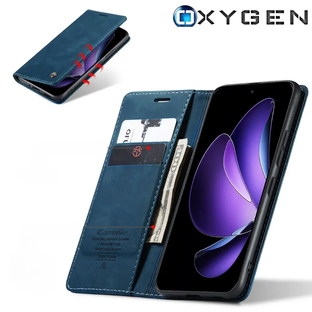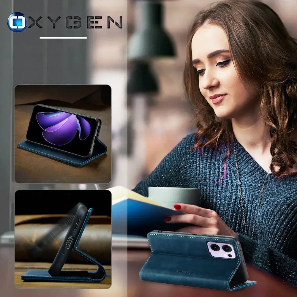 Etui na telefon Oppo Reno13 FS 5G Oxygen BooK Niebieskie + Szkło Hartowane