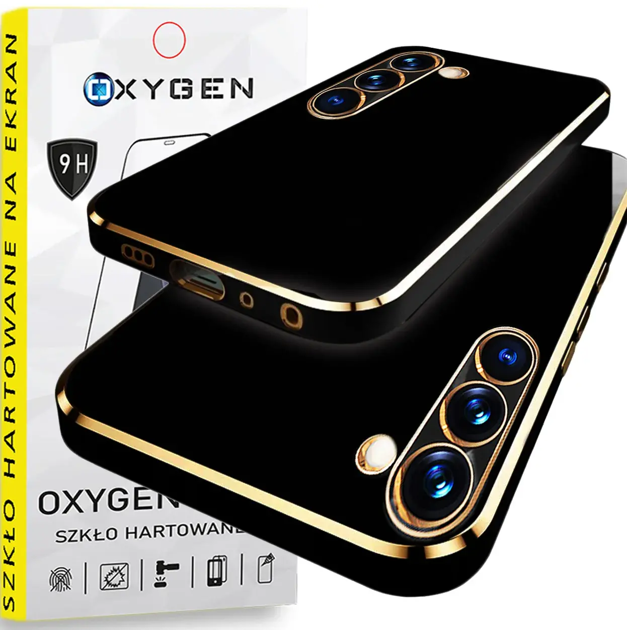 Etui na telefon Samsung Galaxy S25 Oxygen GLOW Czarne + Szkło Hartowane PREMIUM