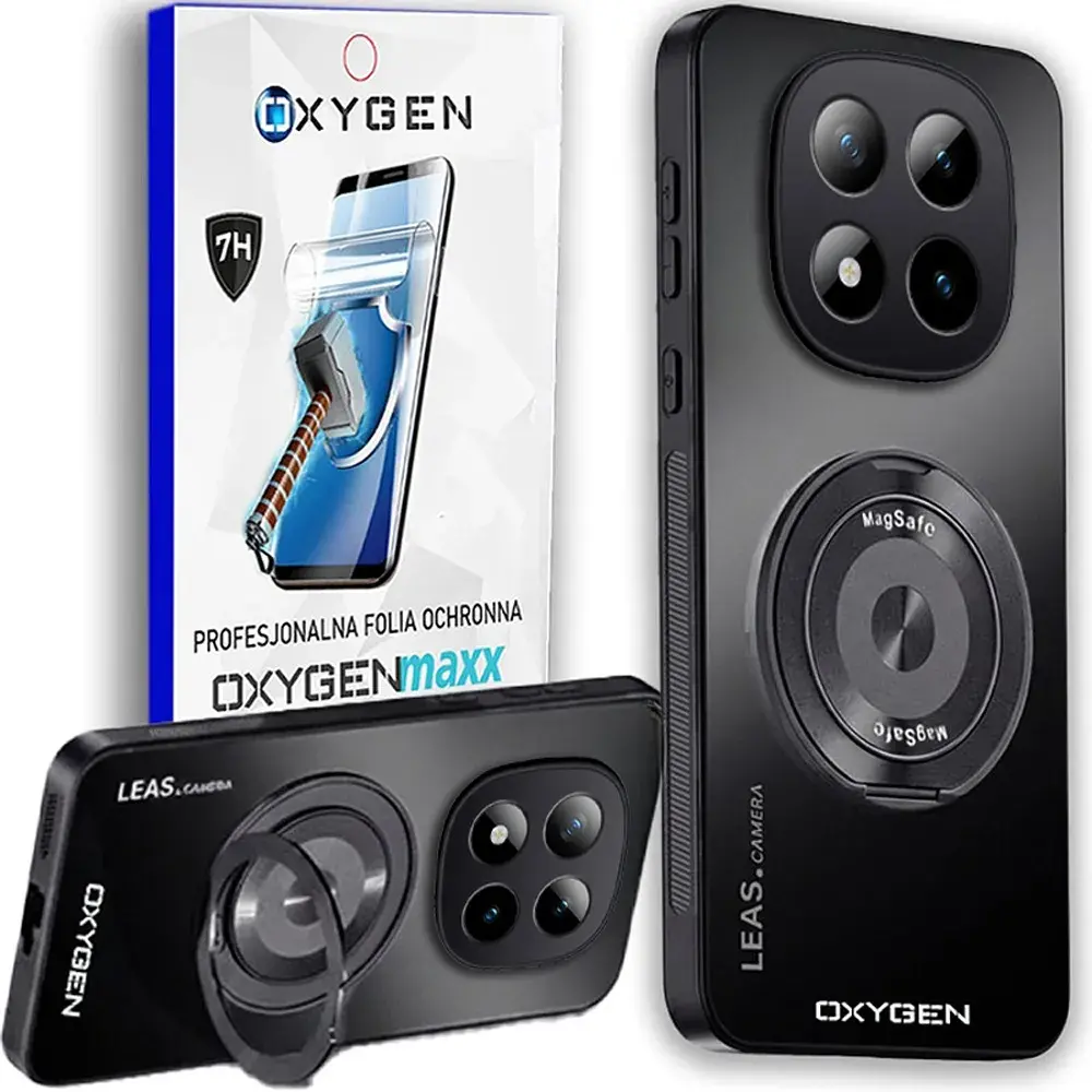 Etui na telefon Xiaomi Poco M8 Pro 5G Czarne Oxygen LeaS MAGSafe + Super Folia