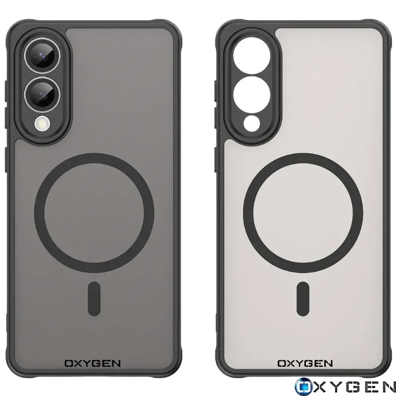 Etui na telefon Samsung Galaxy S25 EDGE Oxygen MAGSafe Czarne + Szkło Hartowane z Ramką Montażową