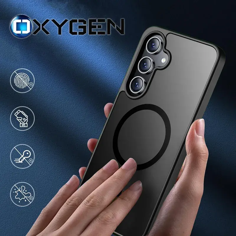 Etui na telefon Samsung Galaxy S25 Oxygen MAGSafe Czarne + Szkło PREMIUM