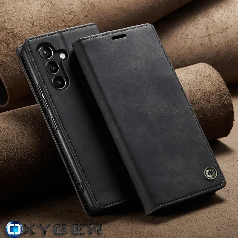 Etui na telefon Samsung Galaxy A15 5G Portfel skóra Szkło Hartowane Oxygen BooK Czarne