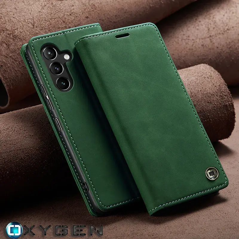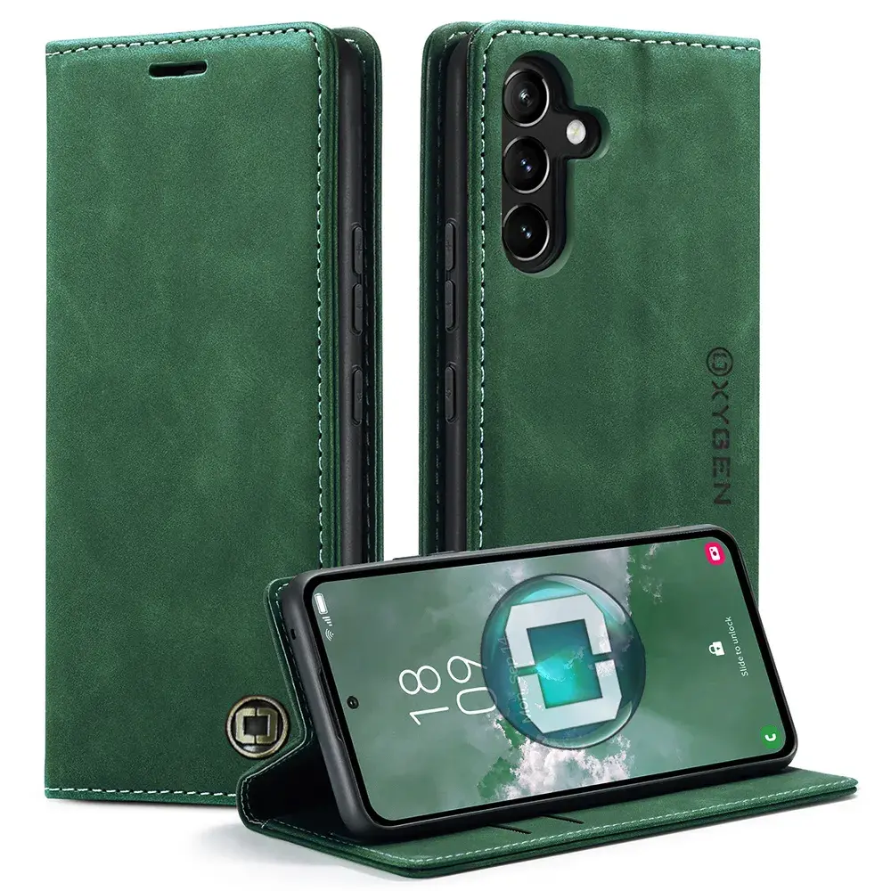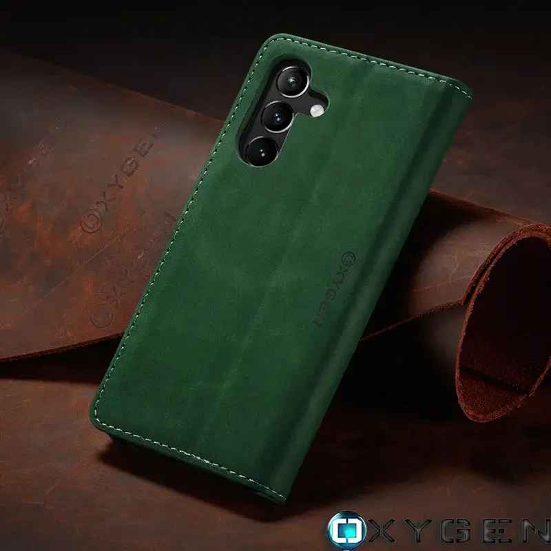 Etui na telefon Samsung Galaxy A15 5G Portfel skóra Szkło Hartowane Oxygen BooK Zielone