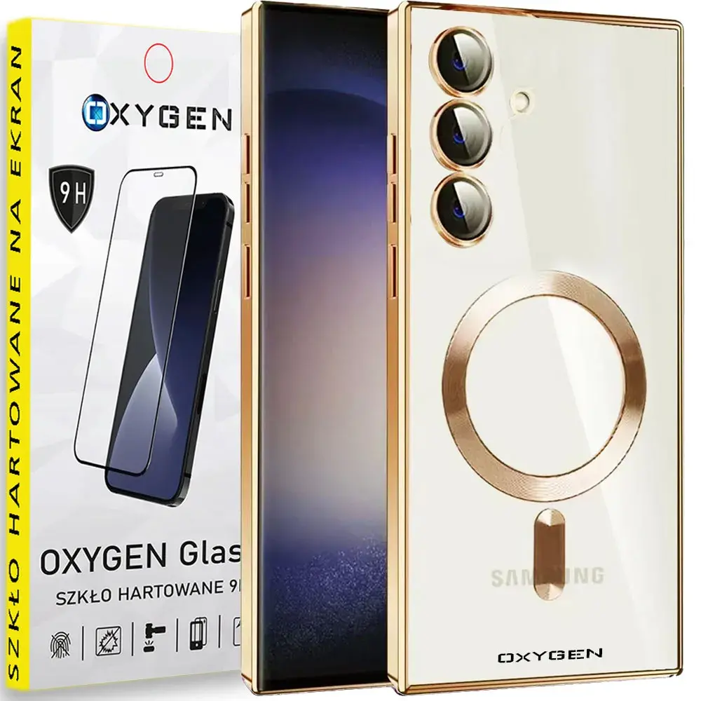 Etui na telefon Samsung Galaxy S24 Oxygen MaG Złote + Szkło Hartowane