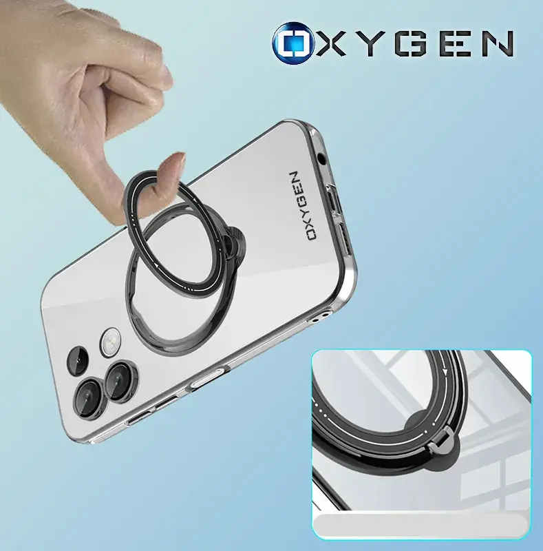 ✅ Etui marki OXYGEN posiada pierścień kompatybilny z bezprzewodowymi ładowarkami, który służy również jako podstawka