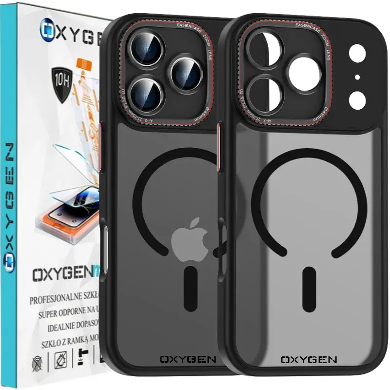 Etui na telefon Apple iPhone 17 PRO MAX Czarne Oxygen REDLINE MAGSafe + Szkło Hartowane Z Ramką Montażową