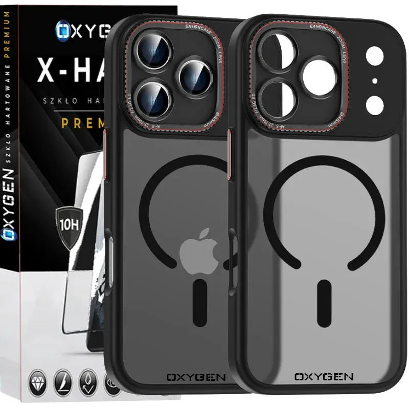 Etui na telefon iPhone 17 PRO MAX Czarne Oxygen REDLINE MAGSafe + Szkło Hartowane X-HARD