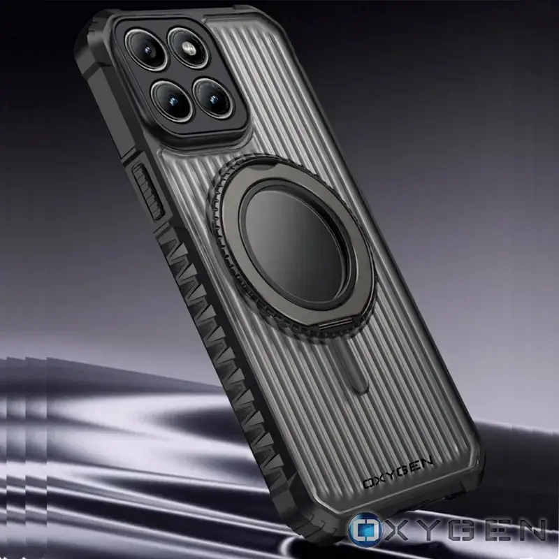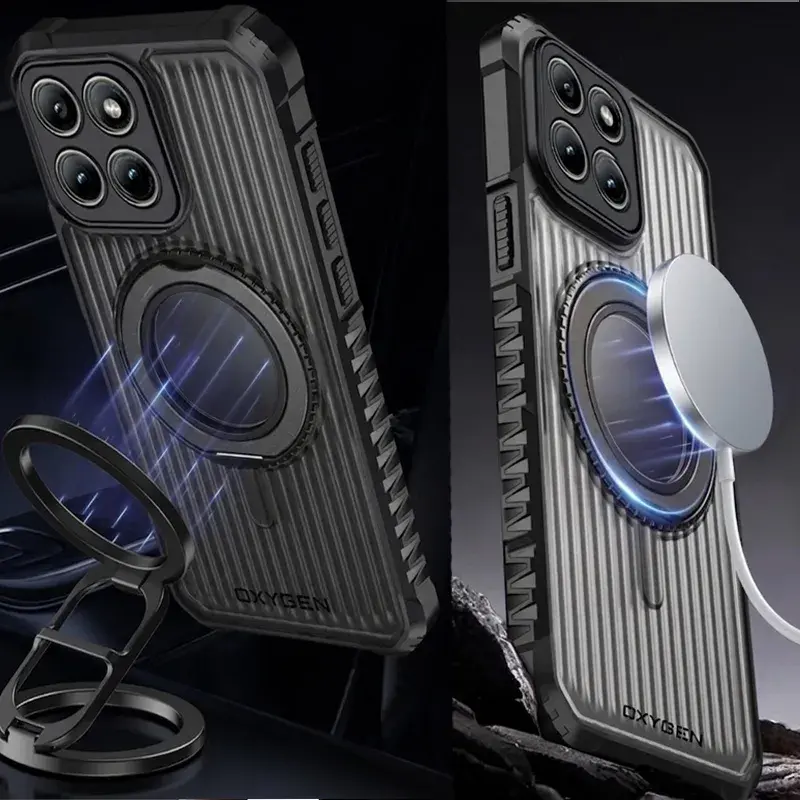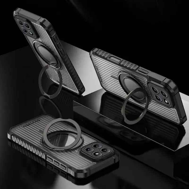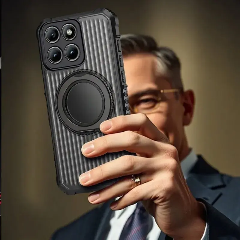Metalowy ring holder zwiększa bezpieczeństwo chwytu, działa jako podstawka i współpracuje z uchwytami magnetycznymi oraz ładowaniem bezprzewodowym.