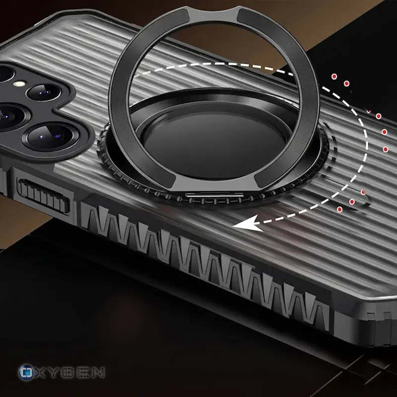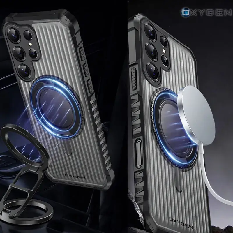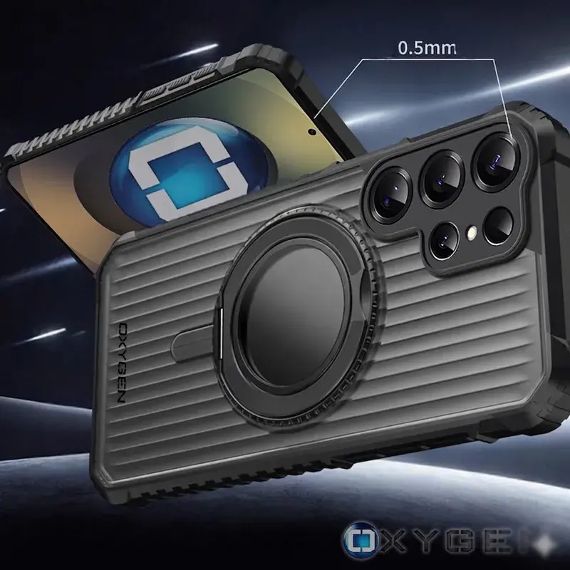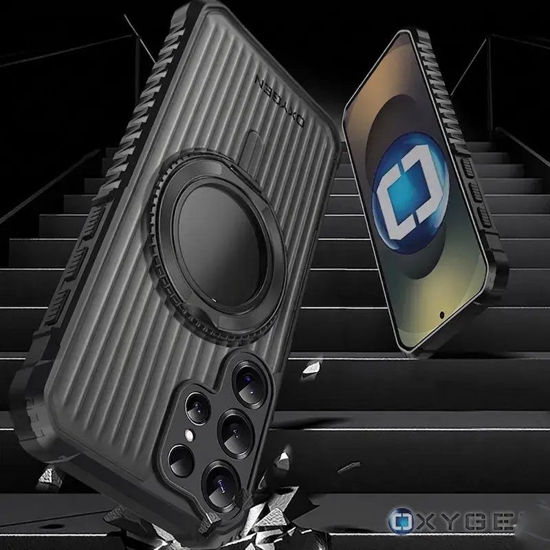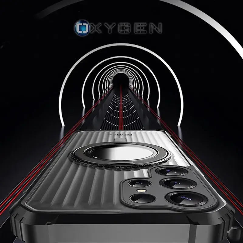 Pancerny zestaw ochronny do Samsung Galaxy S26 Ultra 6,9". Seria OXYGEN REX łączy wzmocnioną konstrukcję z metalowym ringiem oraz super folią samoregenerującą zapewniając pełną ochronę ekranu.
