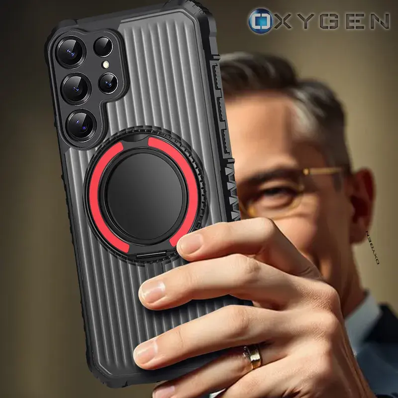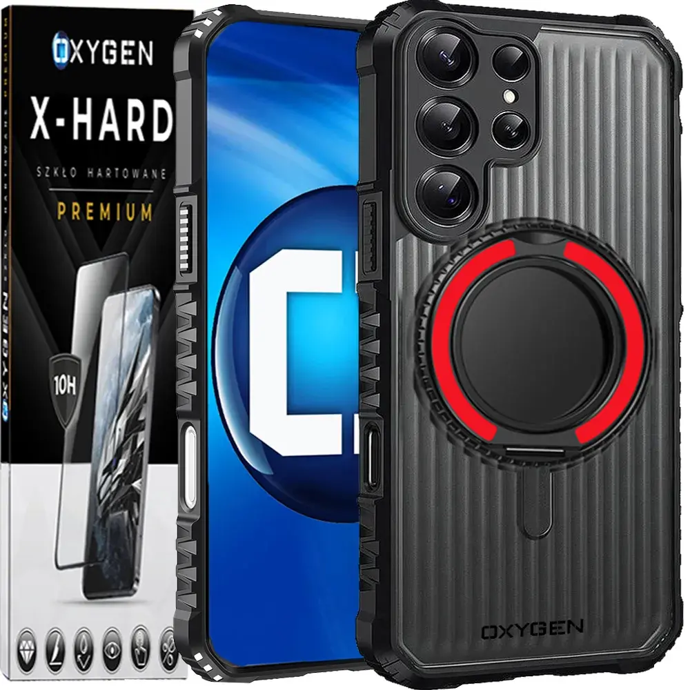 Pancerny zestaw ochronny do Samsung Galaxy S26 Ultra 6,9". Seria OXYGEN REX łączy wzmocnioną konstrukcję z metalowym ringiem oraz szkło hartowane 10H X-HARD zapewniające pełną ochronę ekranu.