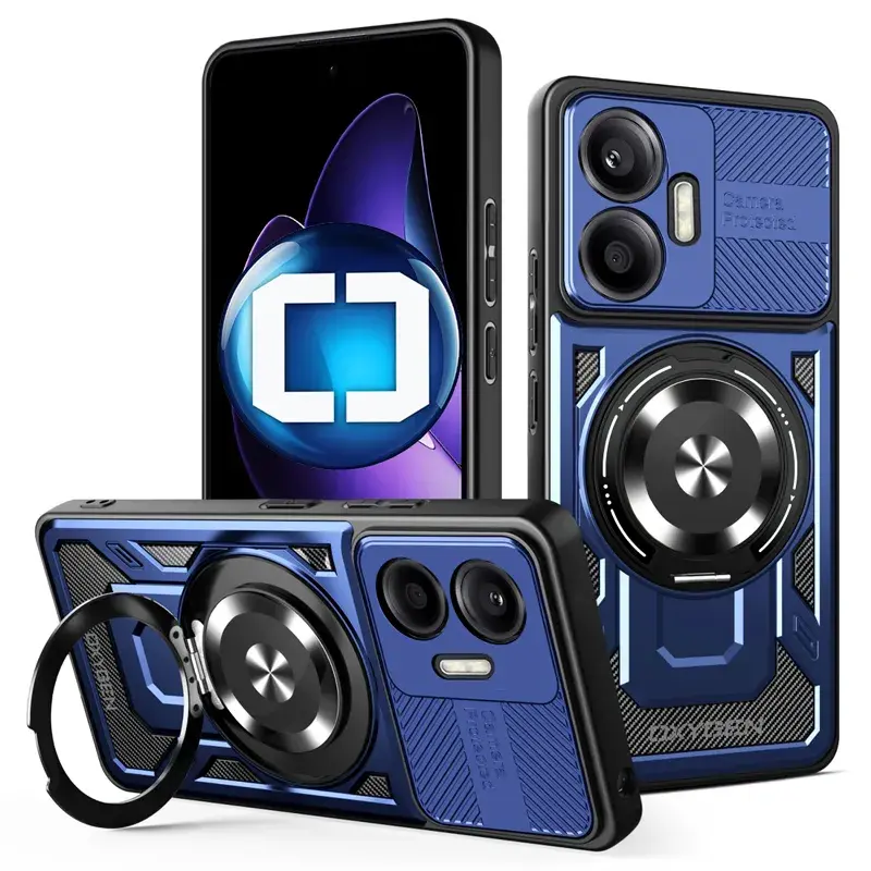 Etui na telefon Xiaomi POCO F7 Niebieskie Oxygen RR MAGSafe + Szkło Hartowane 9H