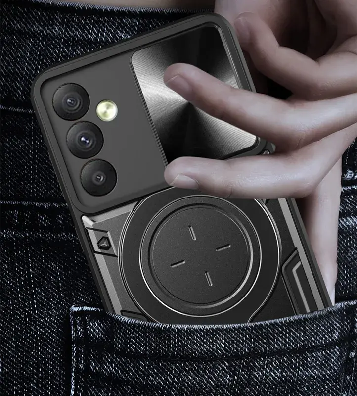 ✅ Posiada system rantów i przetłoczeń, które chronią wrażliwe miejsca telefonu takie jak boki telefonu, wyświetlacz oraz aparat (posiada system z przesuwaną klapką chroniącą obiektywy)