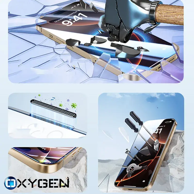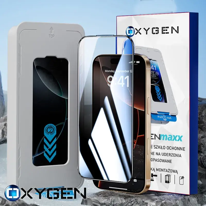 Szkło hartowane OXYGEN na ekran do Apple iPhone 16 PLUS z ramką montażową
