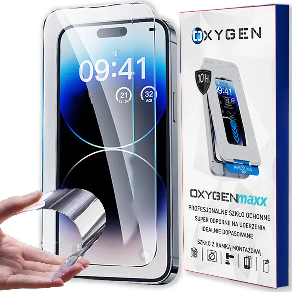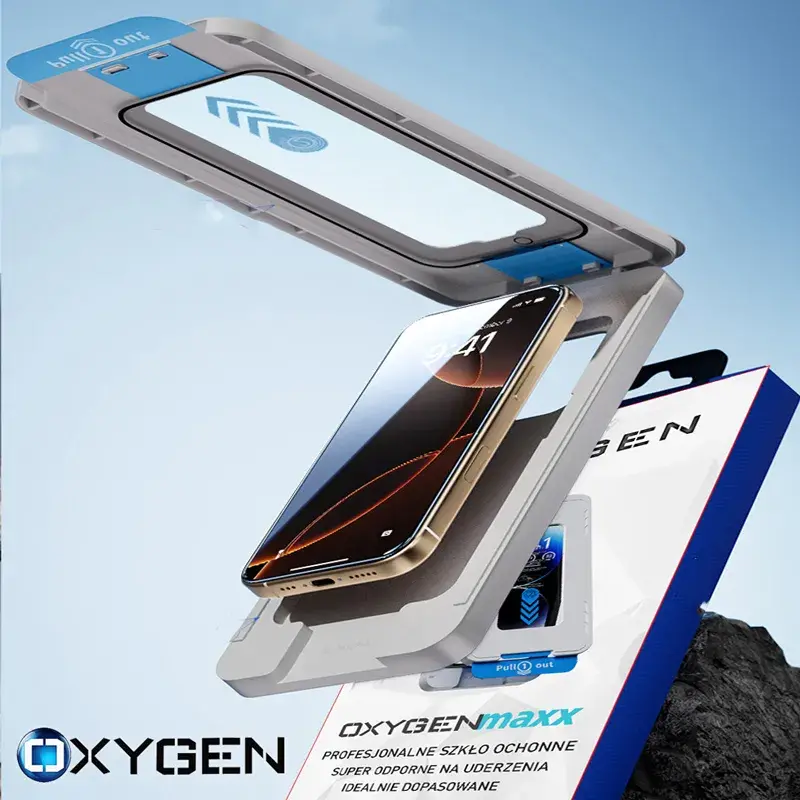 Szkło hartowane OXYGEN na ekran do Apple iPhone 16 z ramką montażową