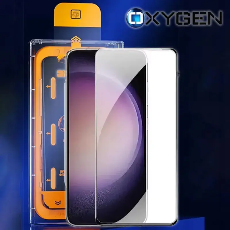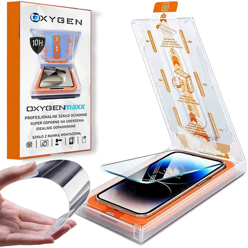PREMIUM szkło hartowane marki OXYGEN elastyczne ze wspieraniem czujnika odcisku palca, z ramką ułatwiającą zamontowanie szkła na ekranie